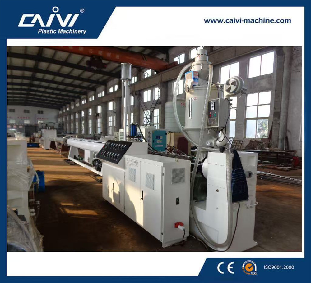 原材料→真空上料→材料干燥→單螺桿擠出機→螺旋式模具→低溫冷卻定徑套,高位水箱→水冷機→浸泡真空定型箱→浸入泡冷卻水箱→浸泡冷卻水箱→ 噴碼機→皮帶牽引機→雙工位收卷機→成品檢測包裝
